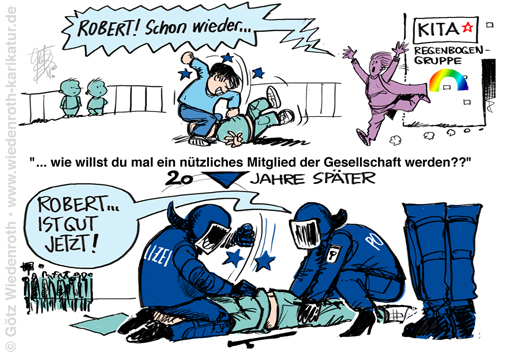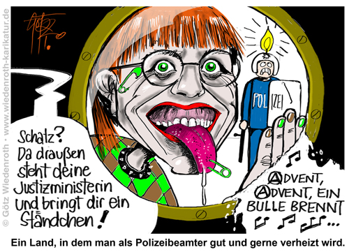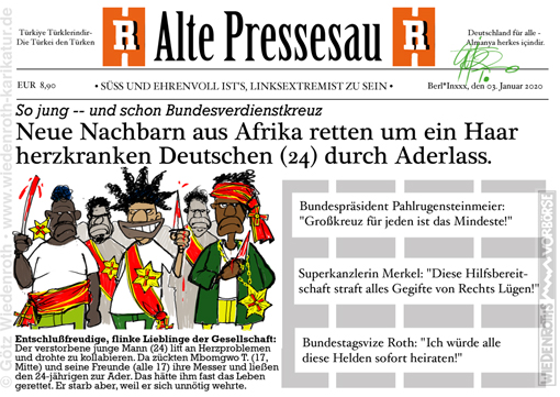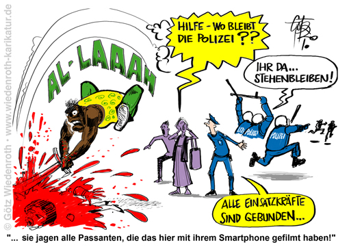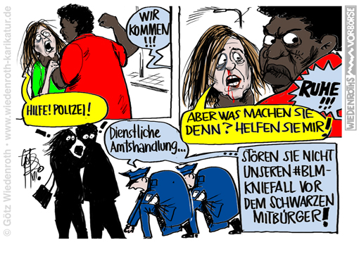 Raubüberfall in Tateinheit mit schwerer Körperverletzung: Zum Glück war die Polizei schnell da ... um kniefällig die unauslöschliche weiße Schuld zu sühnen. |