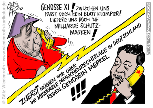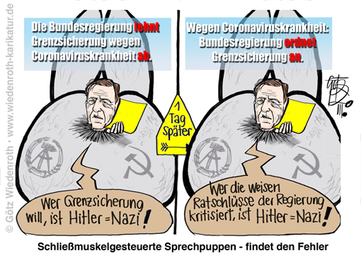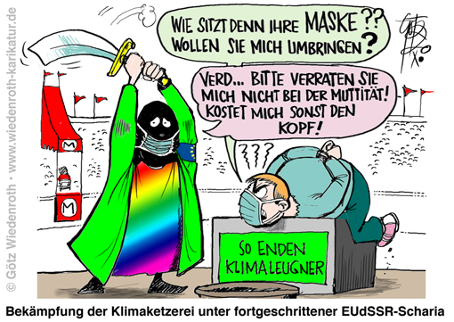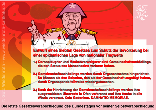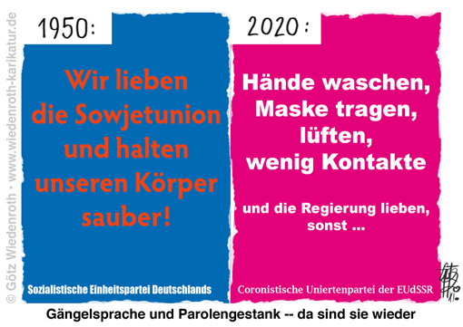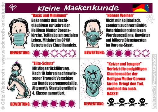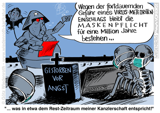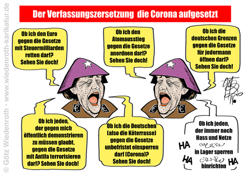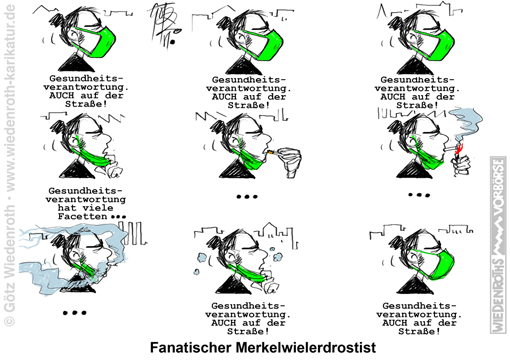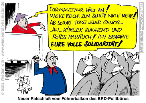 Merkels Coronaherrschaft: Uniforme Meinung. Uniforme Masken. Zur Gefahrenabwehr jetzt auch Uniformpflicht. |