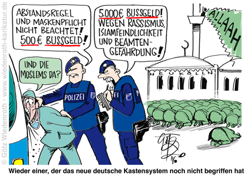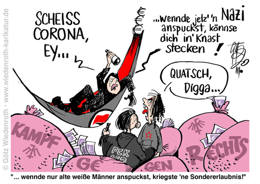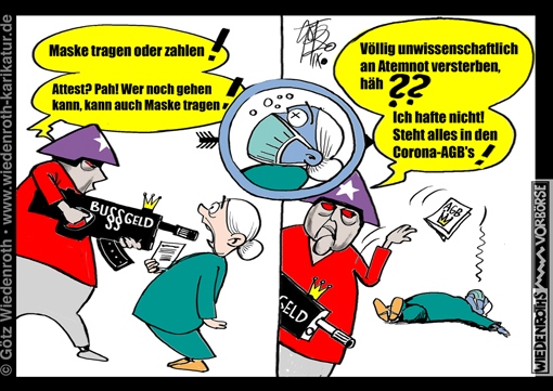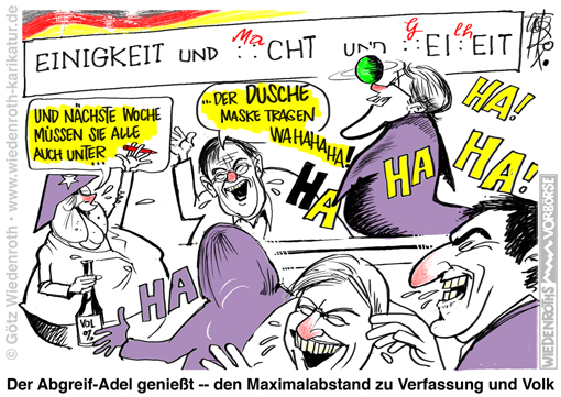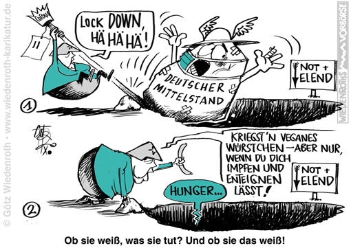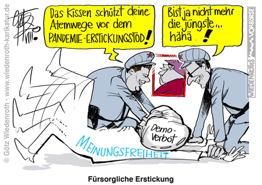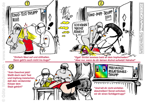 | Profiteure der Coronadiktatur: Krumme Charaktere, denen es Spaß macht, sich am Boden auf den Kopf eines Menschen zu setzen. |