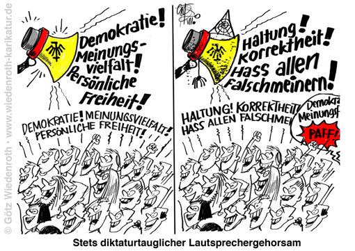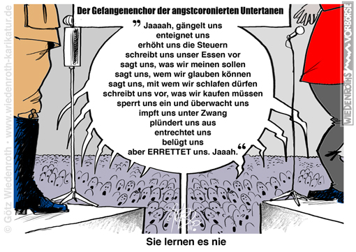 | "Grundrechte? Weg damit! Ich hänge an den Lippen von Gates, Merkel, ARD-Fernsehonkels und ZDF-TV-Tanten!" |