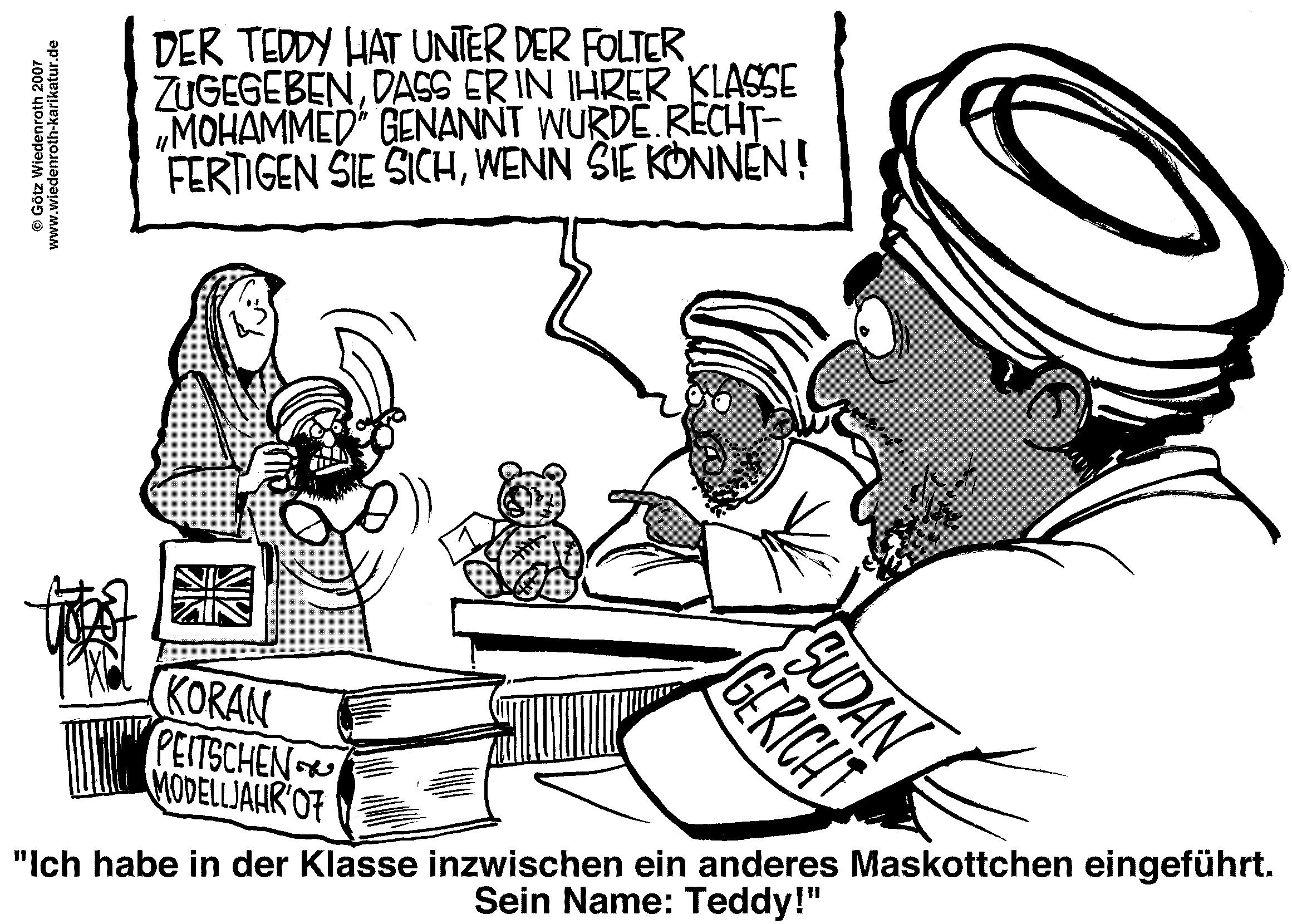 britische Lehrerin, ein Kinderspielzeug und religiöse Kindsköpfe