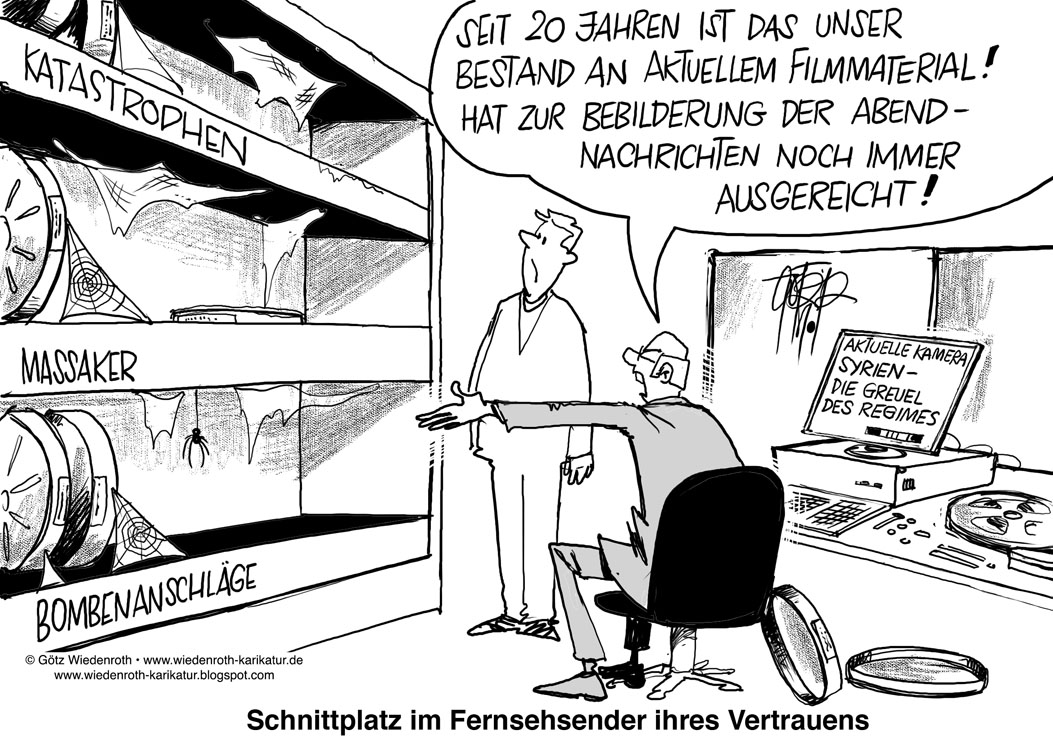 - zum Thema: Syrien-Massaker im deutschen Fernsehen: Der Filmabspieler vom Studio/ der zeigt uns Bilder/ wer weiß von wo.