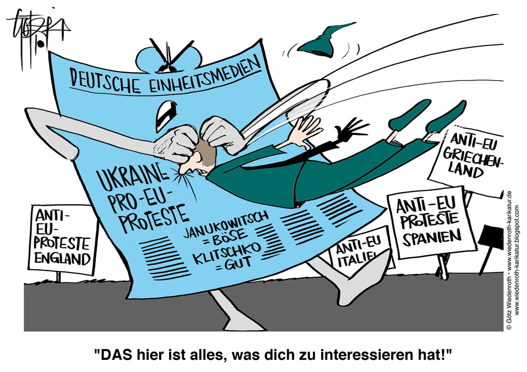- zum Thema: Deutsche gleichgeschaltete Medienberichterstattung: Demonstranten, die EU-Fahnen schwenken (Ukraine rauf und runter). Brennende EU-Fahnen werden nicht gezeigt.