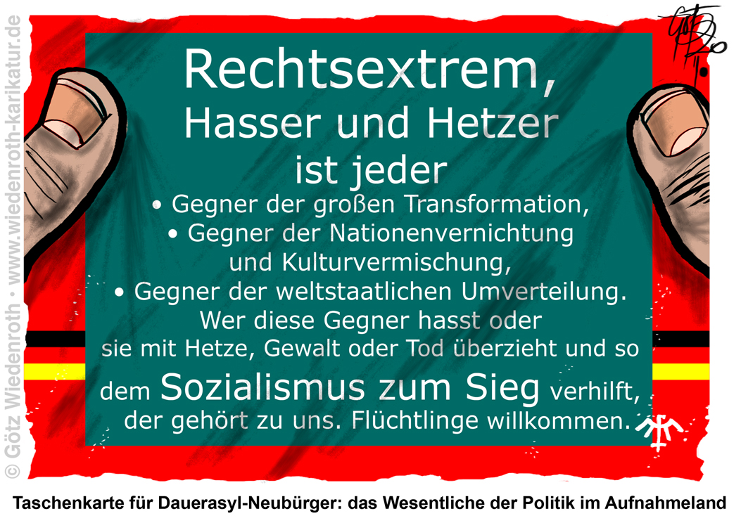 Bildunterschrift: Taschenkarte für Dauerasyl-Neubürger: das Wesentliche der Politik im Aufnahmeland. |