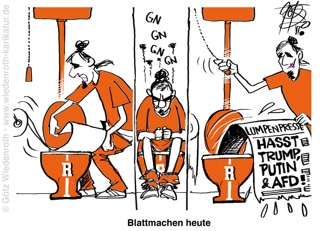 Relotiuspresse: "überholtes Ideal von neutralem Journalismus". Mehrlagiges Zeitungspapier dient ihr nur noch zum Abladen ihrer Haß-Exkremente.