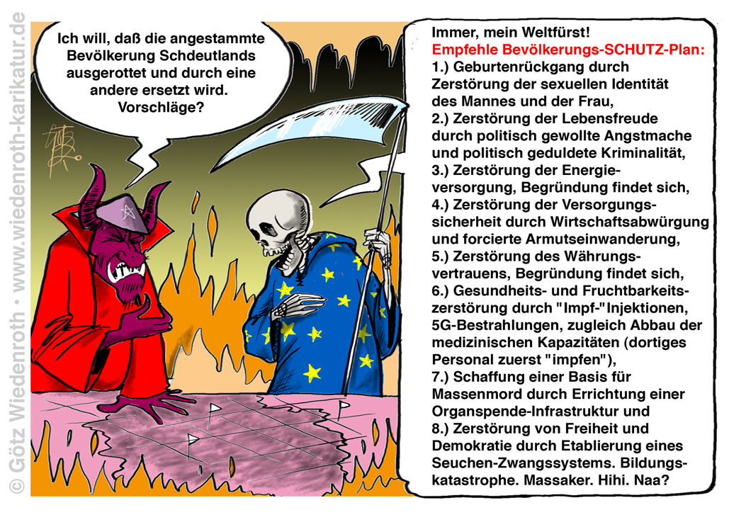 "Immer, mein Weltfürst! Empfehle einen Bevölkerungs-SCHUTZ-Plan!"