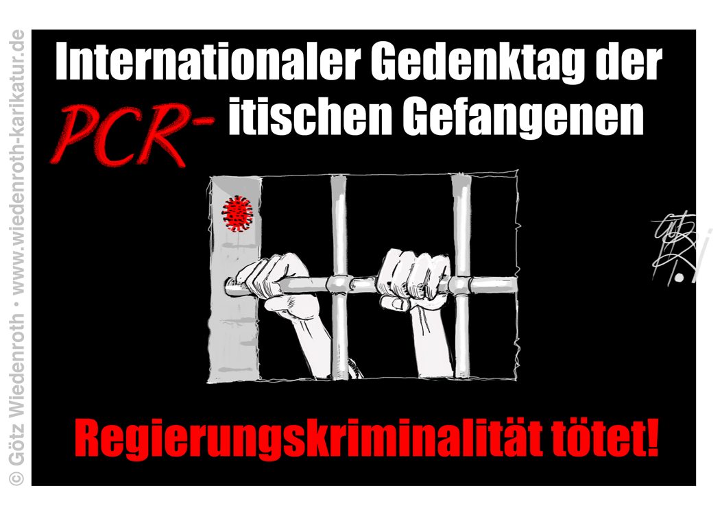 Karikatur vom 03. Januar 2021: Corona: Ein absurd nichtssagender PCR-Test als Quarantäne-Haftgrund. Afterwissenschaftliche politische Schwätzer als begeisterte Einknaster. |