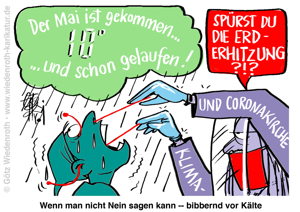 Karikatur vom 26. Mai 2021: Der Mai ist gekommen ... und schon gelaufen! Spürst du die Erderhitzung? "Einzelfall" heißt es dann. Wäre der Mai ein heißer, gäbe es täglich Klimaalarm. |