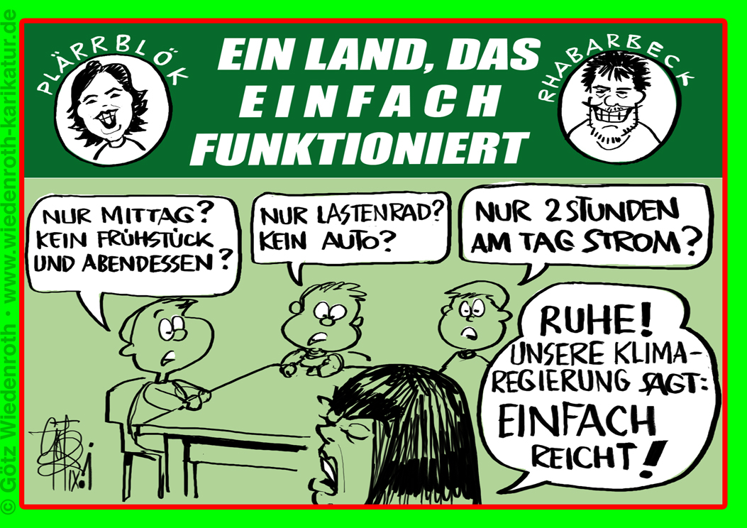 Karikatur vom 21. September 2021: "Ein Land, das einfach funktioniert" plakatieren die Klimakommunisten. Die naiv-grünen Wähler werden sich noch umgucken, wie sehr einfach. |