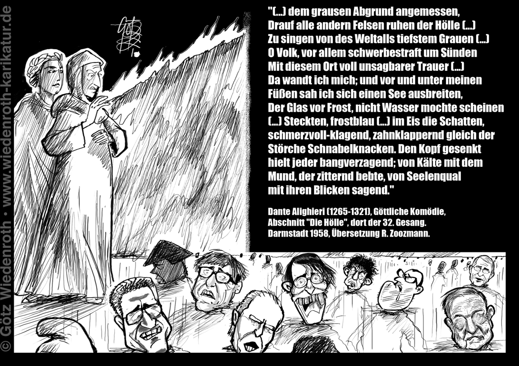 Bildunterschrift: Dante Alighieri (1265-1321), Göttliche Komödie, Abschnitt "Die Hölle", dort der 32. Gesang. |