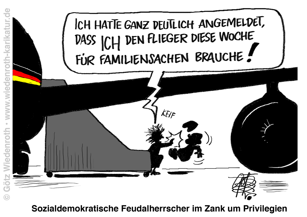 Karikatur vom 11. Mai 2022: Freiflugschein im Regierungsflieger für die Dynastie des Ministers. Sozialismus endet immer damit, daß seine Funktionäre sich wie Feudalherrscher aufführen. |