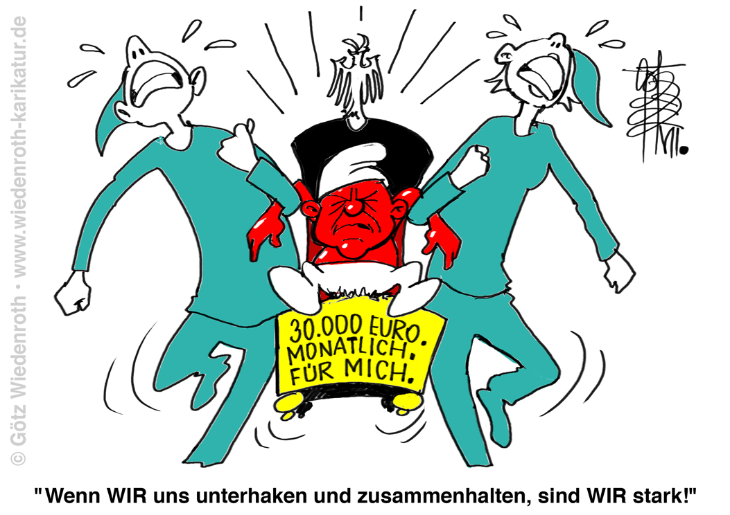 Karikatur vom 07. Juli 2022: Törichtes Scholzomaten-Kauderwelsch. "Wir". "Unterhaken" sollen Sie. Aber bloß nicht nachhaken, sonst gelten Sie sofort als Verfassungsfeind. |