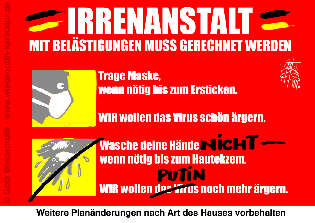 Karikatur vom 02. August 2022: Wie spricht der deutsche Staat 2022 zu seinen Bürgern? Wie ein Irrenarzt mit unartigen Kindpatienten. Duzen und erratische Befehlslage inbegriffen. |