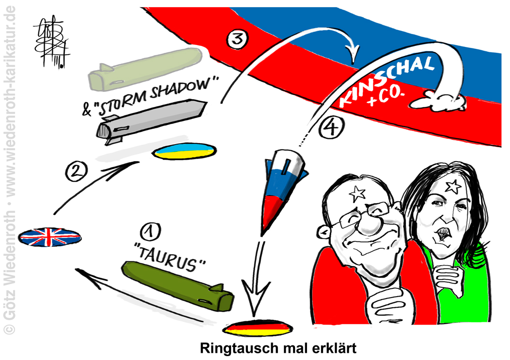 Karikatur vom 15. März 2024: Vokabular aus dem Privatleben? "Ringtausch" politische Modevokabel in Berlin. Wer besorgt es wem, wie, womit und wann -- auf welchem Kriegsschauplatz? |