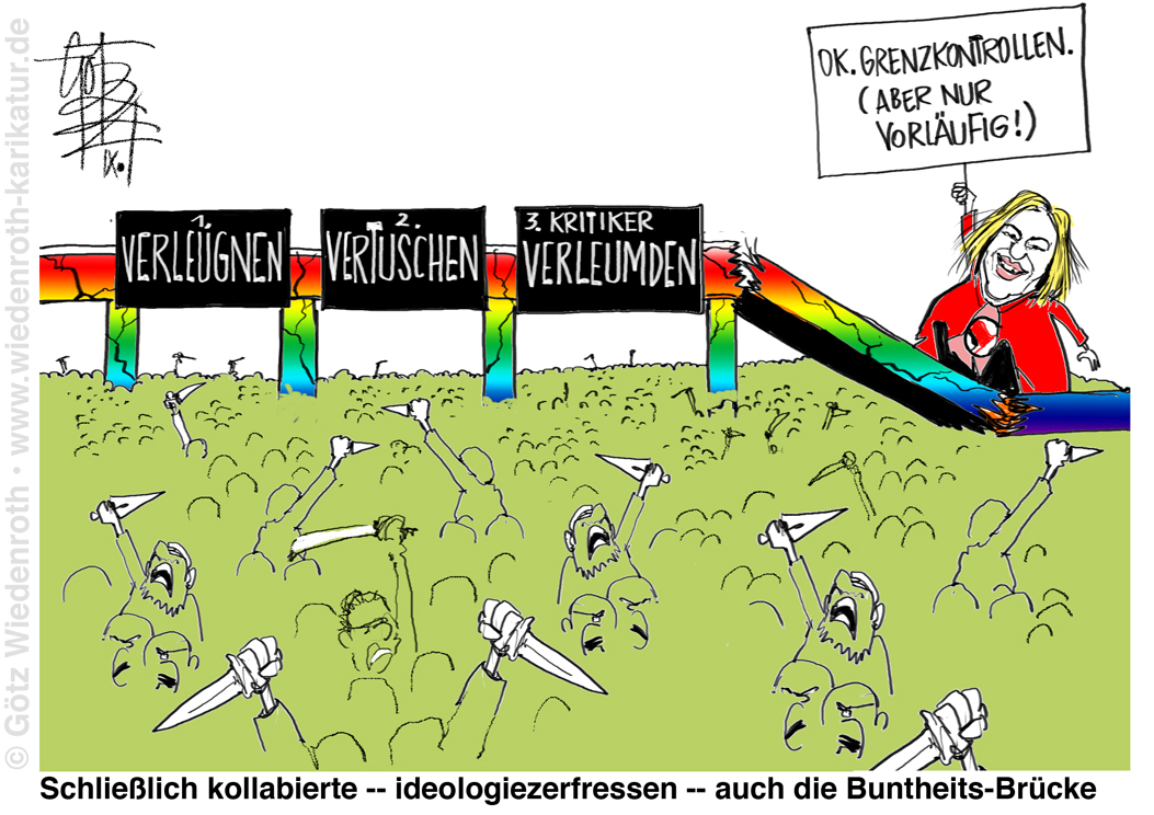 Bildunterschrift: Schließlich kollabierte -- ideologiezerfressen -- auch die Buntheits-Brücke |