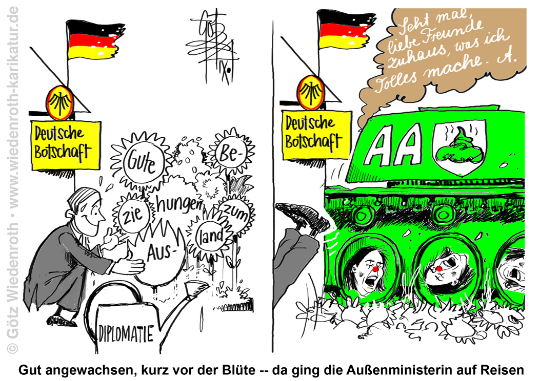 Bildunterschrift: Gut angewachsen, kurz vor der Blüte -- da ging die Außenministerin auf Reisen |