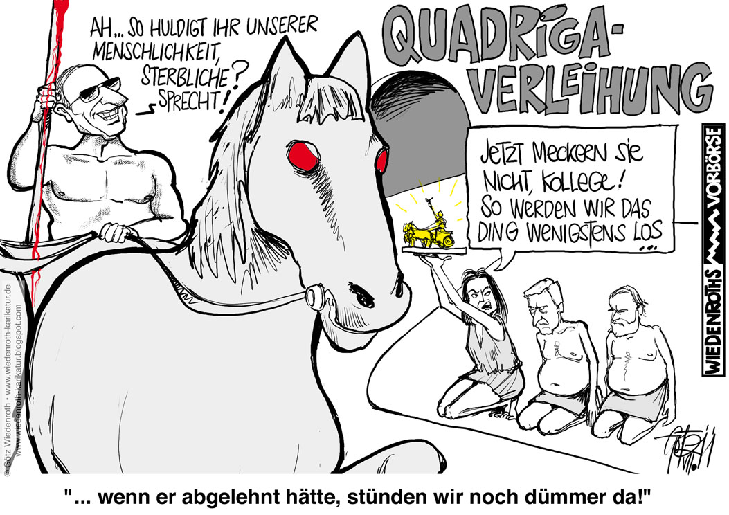 - zum Thema: "Quadriga-Preis": Putin nimmt zum Glück doch noch an - allerdings zu seinen Bedingungen.