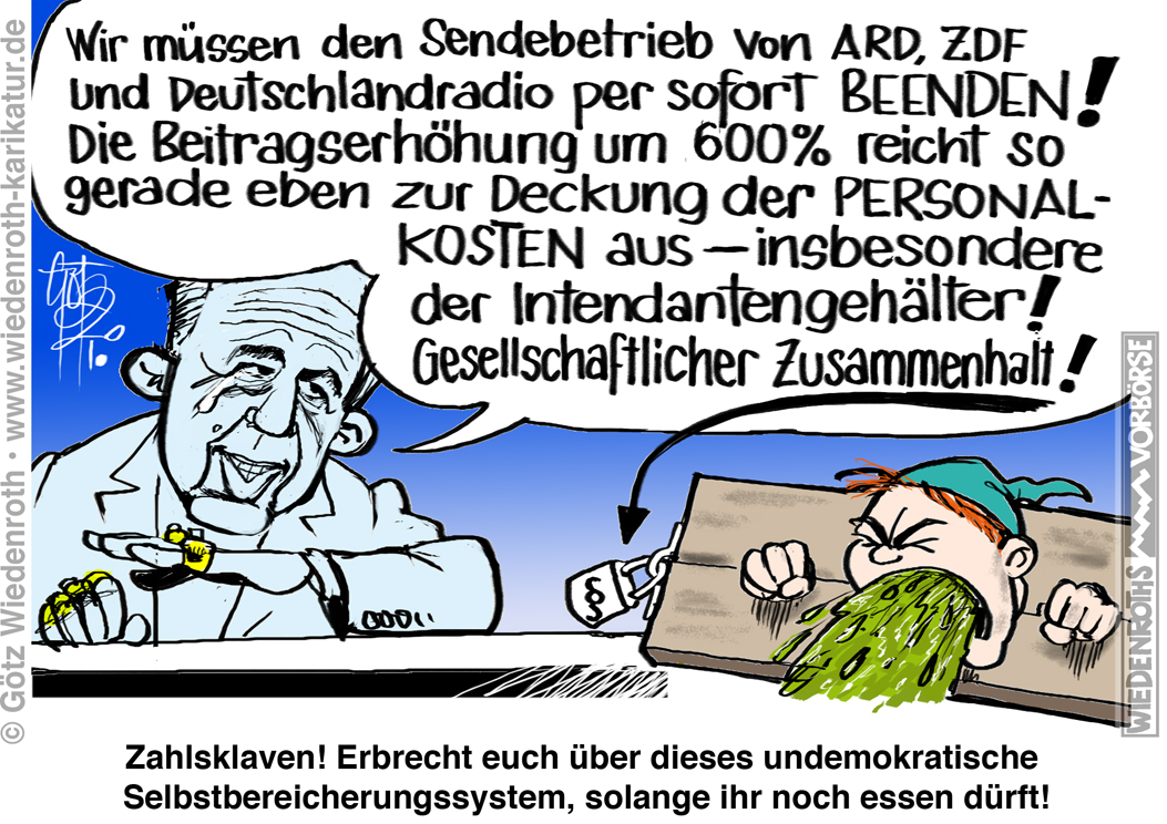 Bildunterschrift: Zahlsklaven! Erbrecht euch über dieses undemokratische Selbstbereicherungssystem, solange ihr noch essen dürft! |