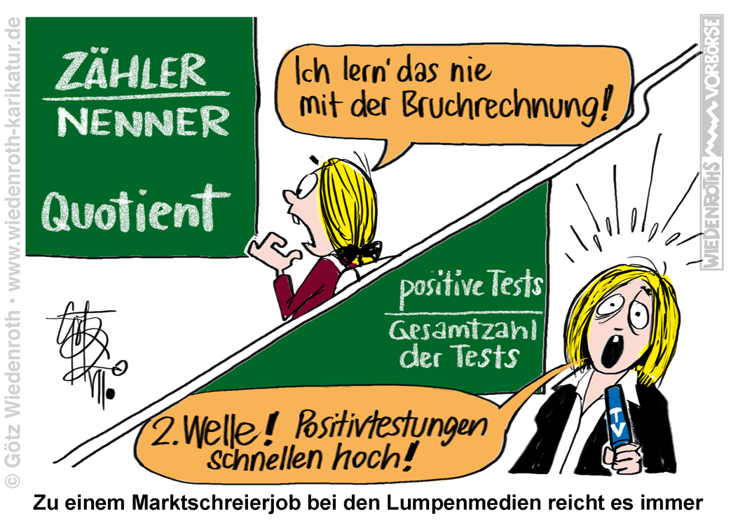 Vorbörse vom 30. Juli 2020: Die typische Journalutte: Immer Schwierigkeiten mit der Bruchrechnung gehabt -- mit dem Angsttrompeten "positive Tests nehmen zu" nie. |