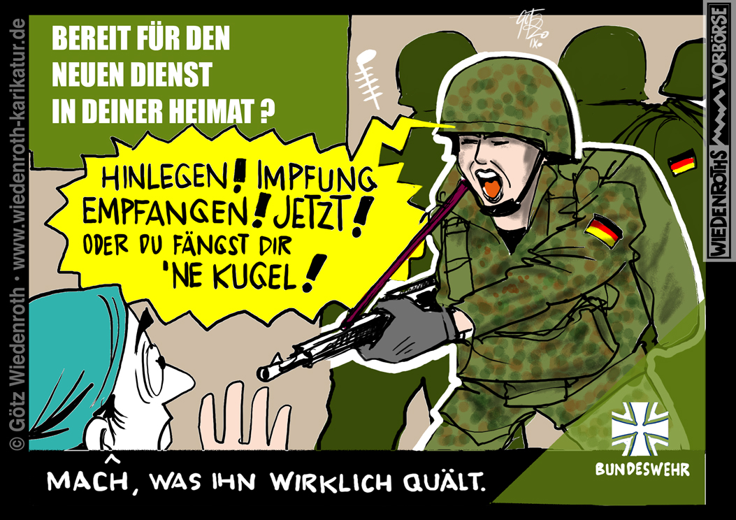 Vorbörse vom 24. September 2020: "Bereit für den neuen Dienst in deiner Heimat?" Originalzitat aus aktueller Werbeplakat-Kampagne der Bundeswehr. Hör ick dir trapsen, Zwangsimpfung? |