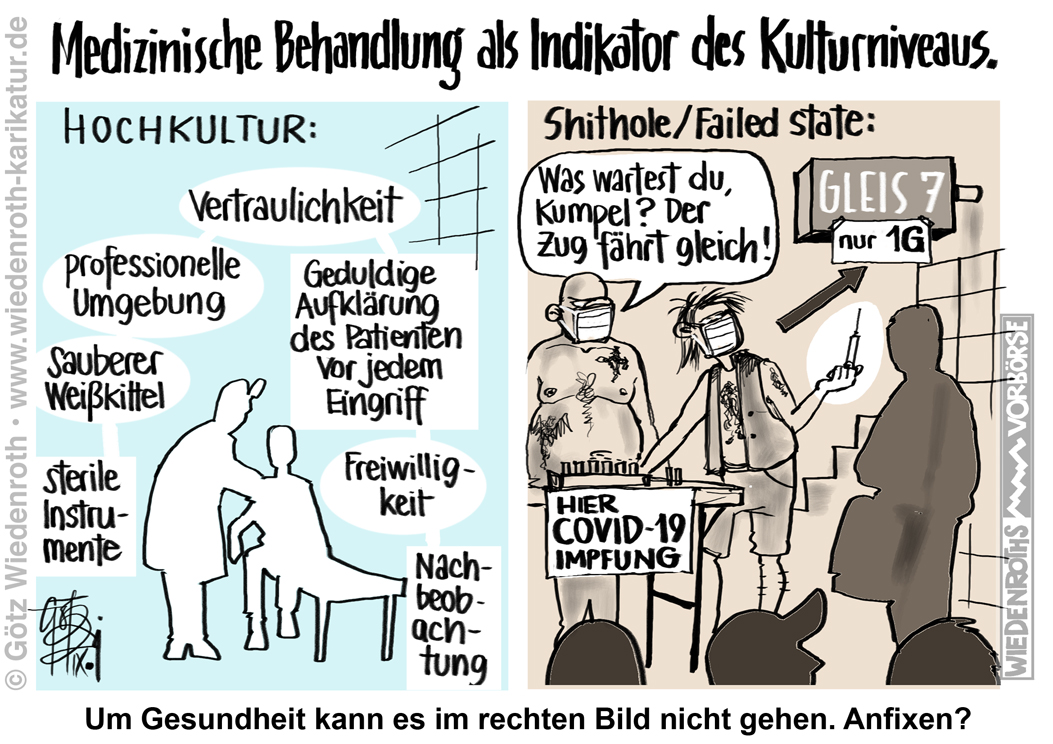 Vorbörse vom 17. September 2021: Verfall der medizinischen Standards in der Corona-Diktatur. Impfen als Bratwurstspektakel. Wir Serum-Junkies von Bahnhof und Zoo. |