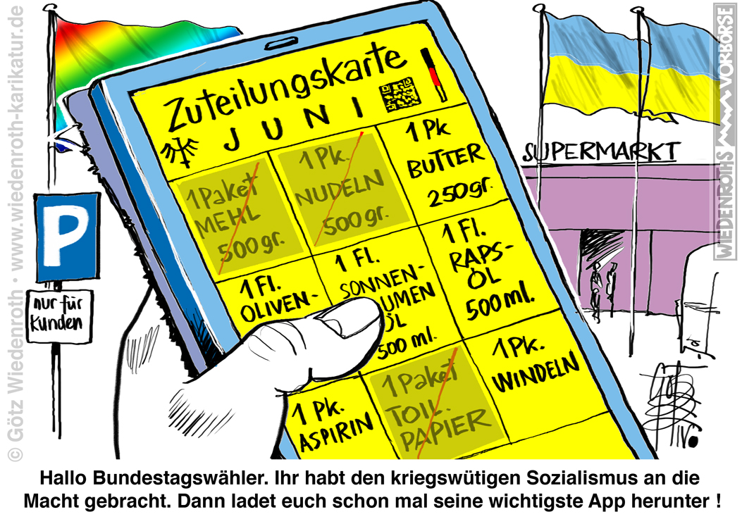 Bildunterschrift: Hallo Bundestagswähler. Ihr habt den kriegswütigen Sozialismus an die Macht gebracht. Dann ladet euch schon mal seine wichtigste App herunter ! |