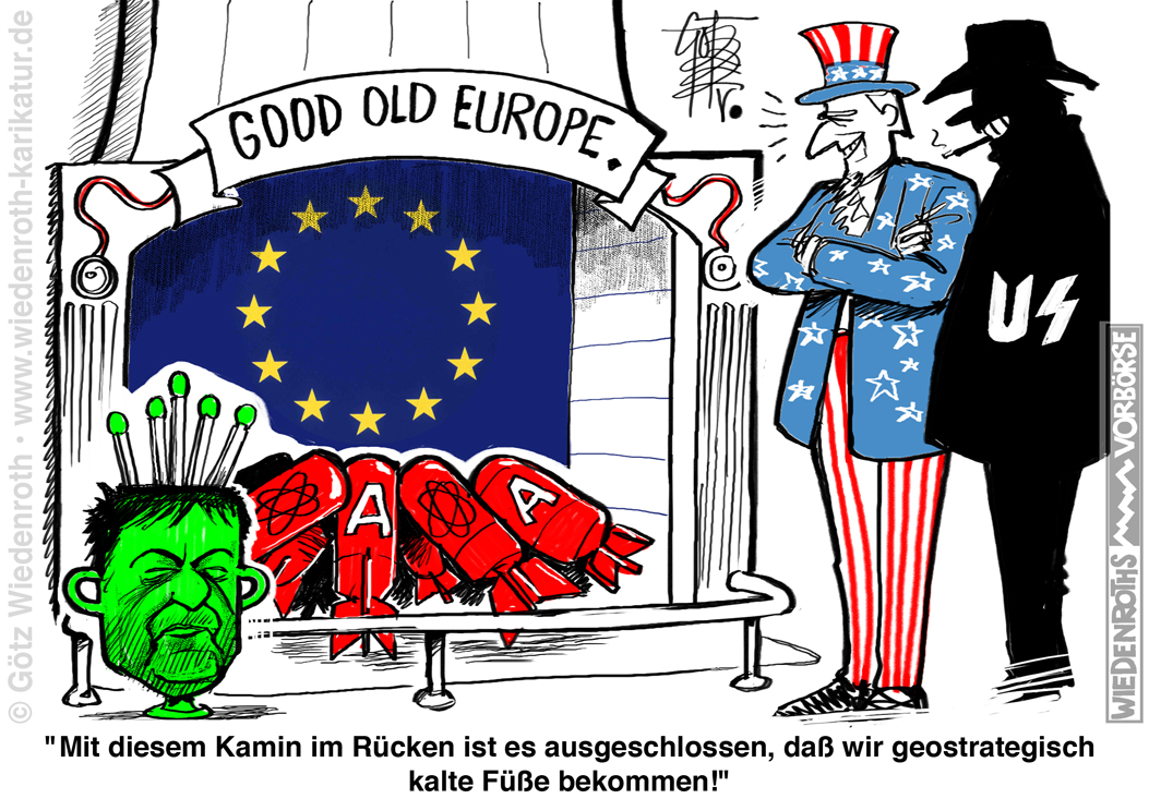 Bildunterschrift: "Mit diesem Kamin im Rücken ist es ausgeschlossen, daß wir geostrategisch kalte Füße bekommen! |