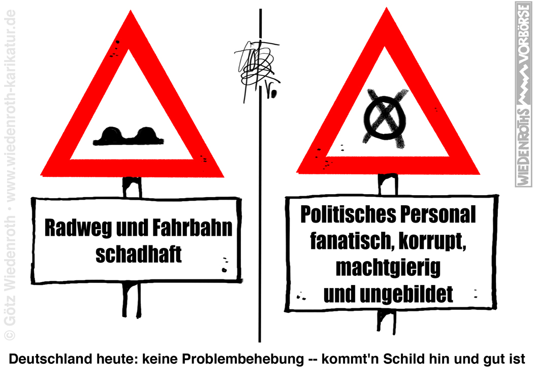 Bildunterschrift: Deutschland heute: keine Problembehebung -- kommt'n Schild hin und gut ist. |