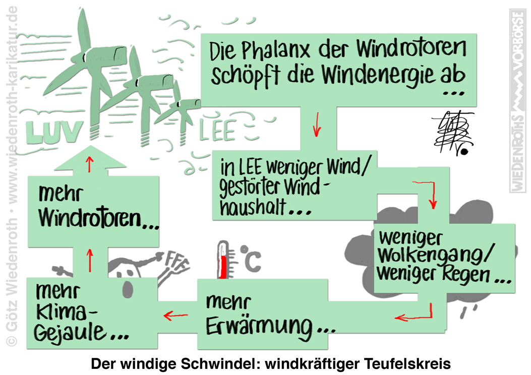 Bildunterschrift: Der windige Schwindel: windkräftiger Teufelskreis |