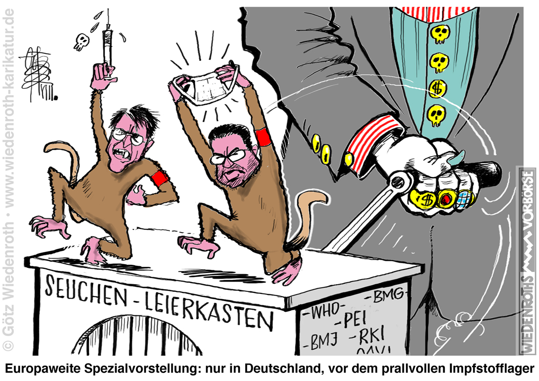 Bildunterschrift: Europaweite Spezialvorstellung: nur in Deutschland, vor dem prallvollen Impfstofflager |