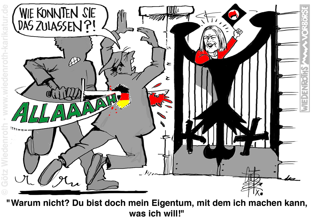 Bildunterschrift: "Warum nicht? Du bist doch mein Eigentum, mit dem ich machen kann, was ich will!" |