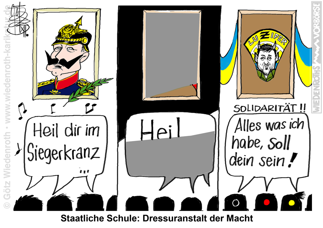 Vorbörse vom 28. Dezember 2023: Glauben, fühlen, "Solidarität" zeigen. Schüler sein in der Bildungs-Staatsanstalt. Hören, nachbeten -- und nicht fragen! Oder willst du nicht dazugehören? |