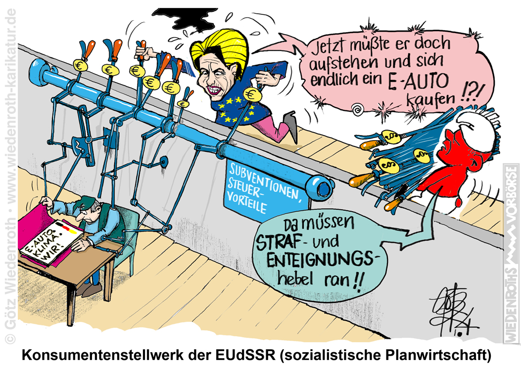 Vorbörse vom 02. Januar 2024: E-Autos? Ladenhüter! EUdSSR wird da aber ganz zickig: "Dann nehmen wir euch eure alten Abgas-Autos eben weg! Müßt ihr man doch E-Autos kaufen!" |