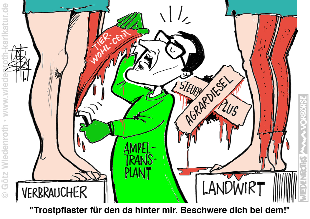 Vorbörse vom 18. Januar 2024: Ampel-Transplant. Milliarden-Haushaltslücke stopfen mit der Haut der Untertanen. Bauern schröpfen: Agrardieselsteuer. Verbraucher: Tierwohl-Cent. |