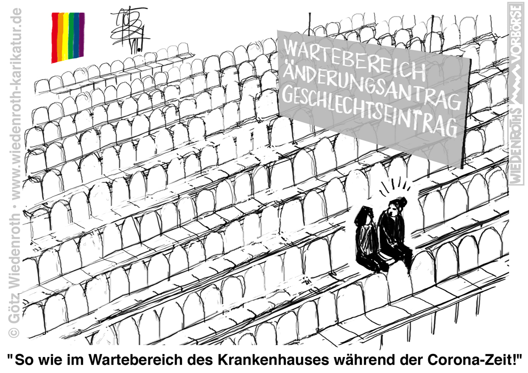 Bildunterschrift: "So wie im Wartebereich des Krankenhauses während der Corona-Zeit!" |