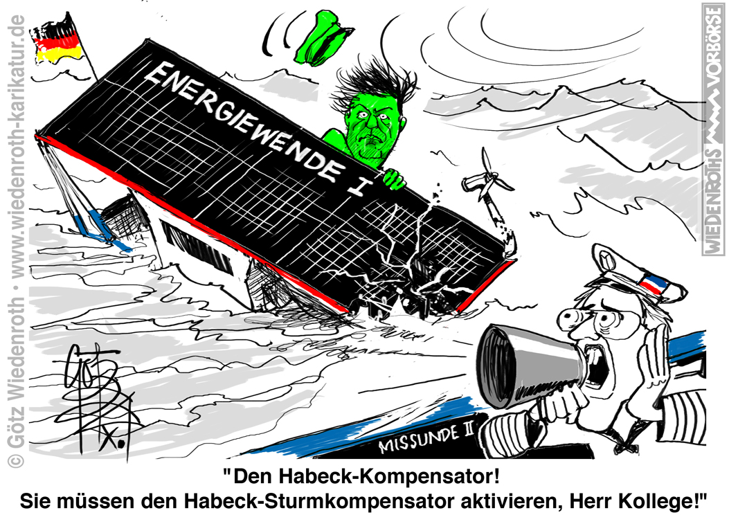 Bildunterschrift: "Den Habeck-Kompensator! Sie müssen den Habeck-Sturmkompensator aktivieren, Herr Kollege!" |