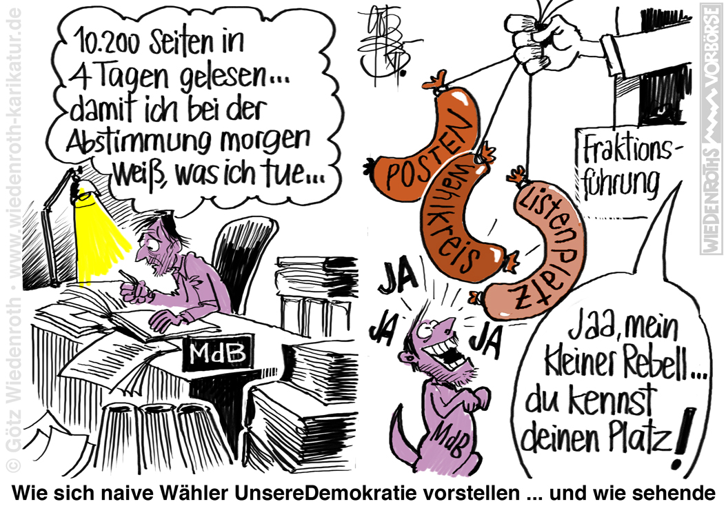 Bildunterschrift: Wie sich naive Wähler UnsereDemokratie vorstellen ... und wie sehende |