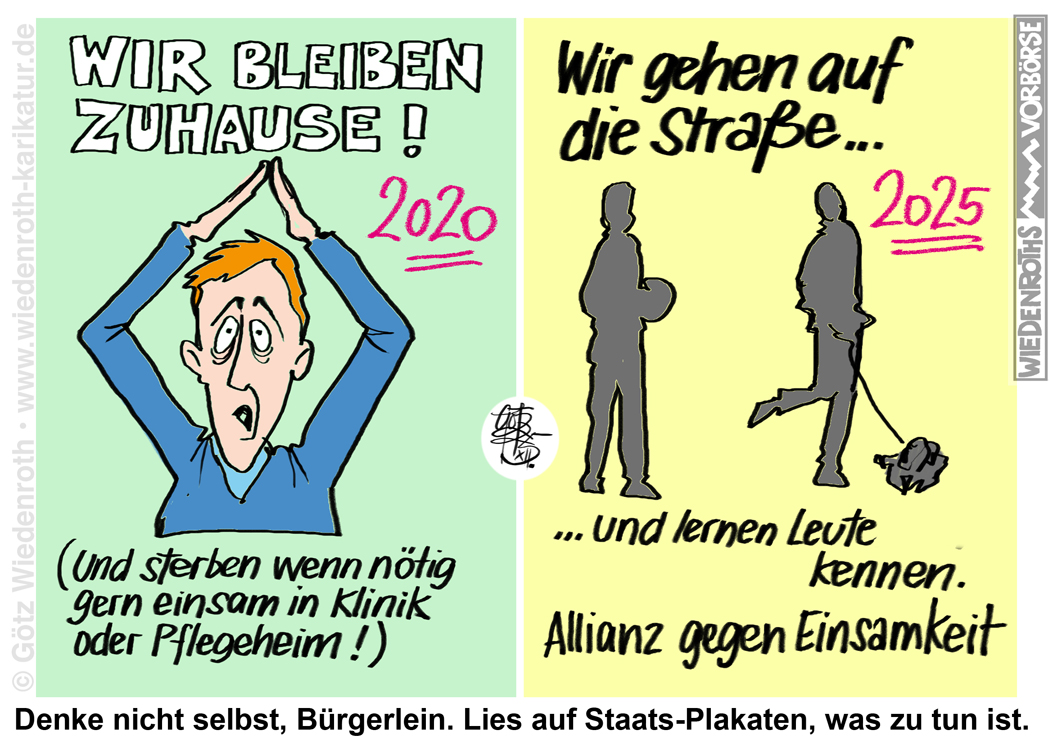 Bildunterschrift: Denke nicht selbst, Bürgerlein. Lies auf Staats-Plakaten, was zu tun ist. |