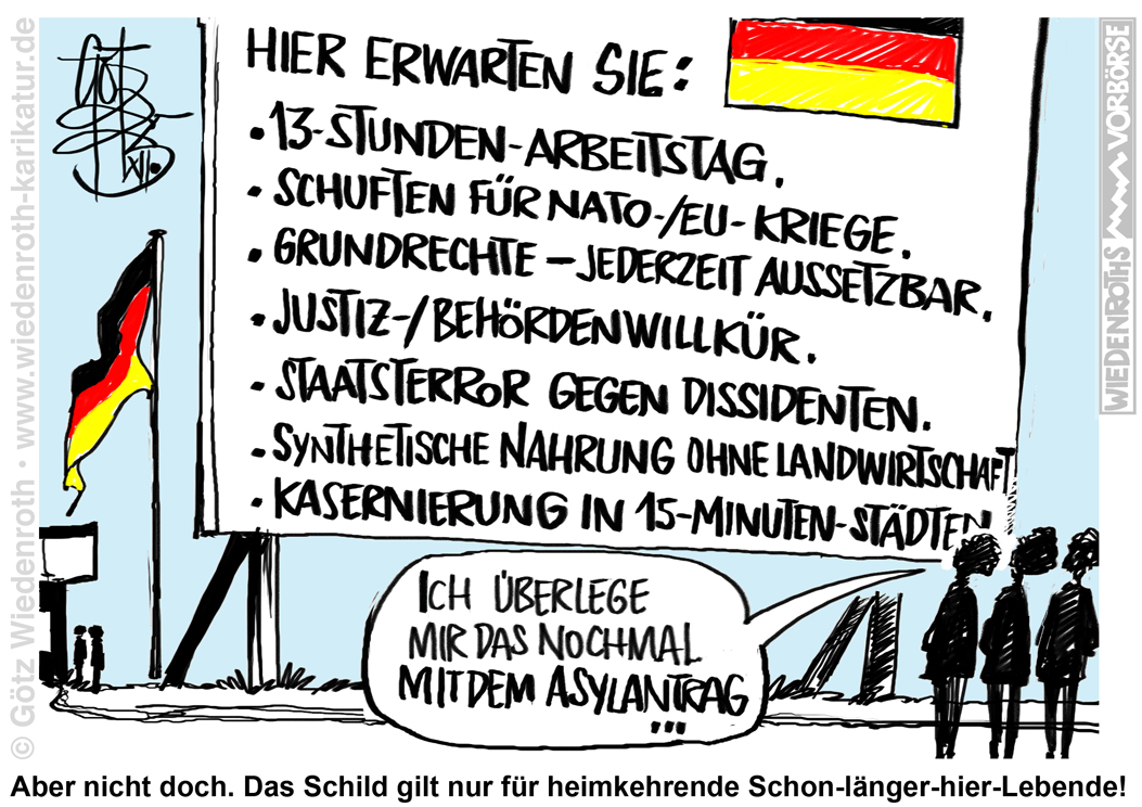 Bildunterschrift: Aber nicht doch. Das Schild gilt nur für heimkehrende Schon-länger-hier-Lebende! |