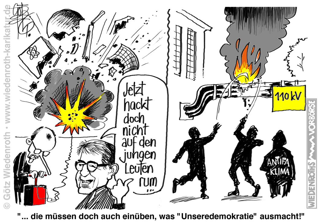 Bildunterschrift: "... die müssen doch auch einüben, was "Unseredemokratie" ausmacht!" |